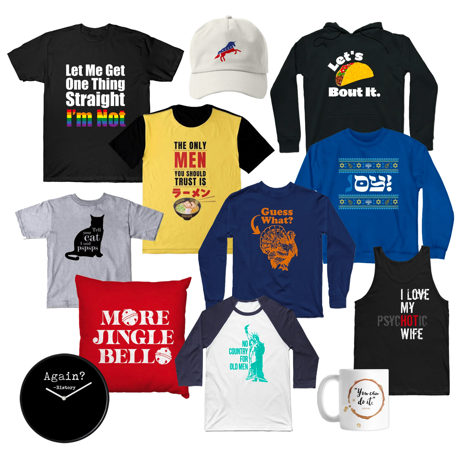 Share your sense of humor on T-shirts, hoodies, hats, stickers, mugs, accessories, and home decor items. They make unique and fun gifts for everyone to chuckle with.